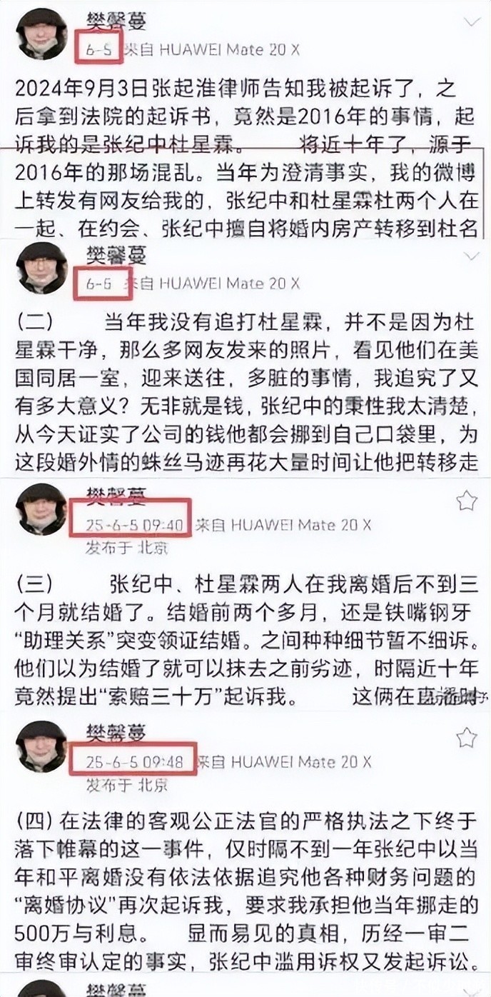 没想到第二年,樊馨蔓就直接甩出两人的亲密合影作为证据,并且直呼杜星霖是情妇,60多岁的婚外情,引起了不少人的围观。